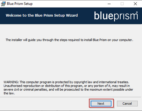 Step 1: After Blue Prism gets downloaded, the following wizard opens up. Click on Next.