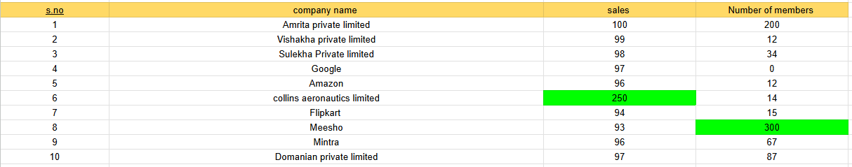 If we take the same dataset from outlines and carefully see the sales row, then values of Mintra and domanian private limited have inconsistencies in the data, also the same for the number of members: