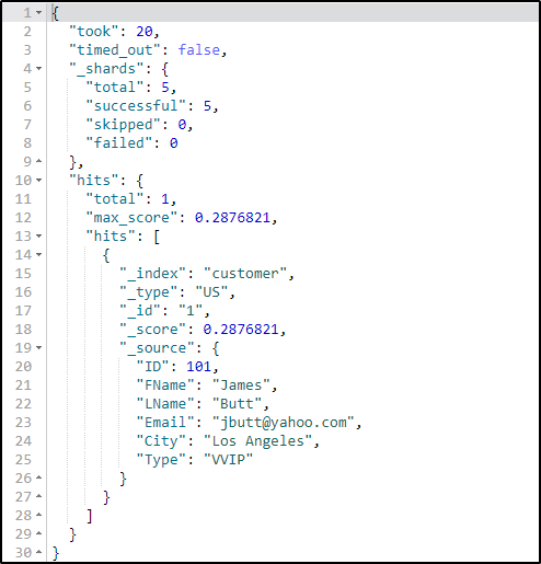 Lets now try to search for the details of all the customers present in our ‘customer’ index.