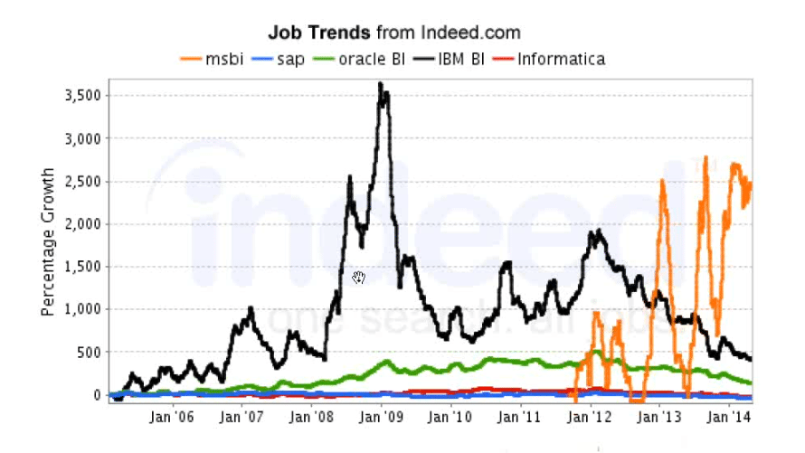 There is a huge and steady growth as far as the job trends for MSBI is concerned. This denotes that the popularity and usage of MSBI as a Business Intelligence tool is on the rise.