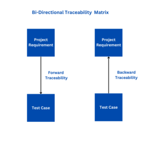 A Bi-directional Traceability Matrix combines both forward and backward traceability into a single matrix. It establishes links not only from requirements to test cases (forward tracing) but also from testing and implementation back to the requirements (backward tracing). This matrix is used to make sure that all the business needs are met in the test cases.