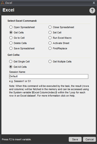 This step will design a task to open your spreadsheet and place your cursor at the A2 cell.