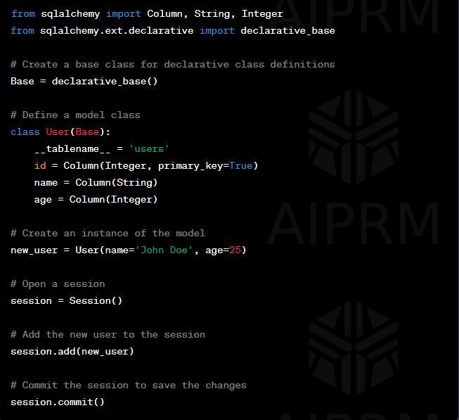 To define the schema for our table, we will use SQLAlchemy’ s declarative base class, which provides a base class for creating the schema of our tables. First, we need to import the class and create an instance of it:
