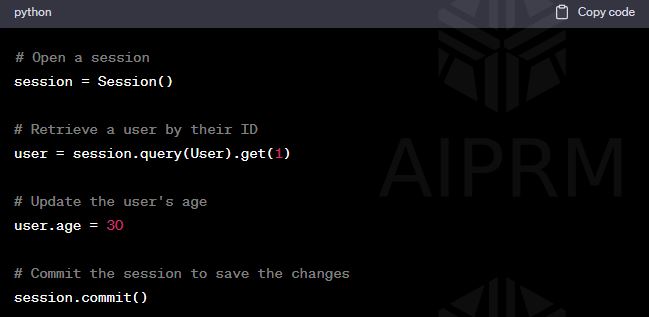 To perform read operations using SQLAlchemy, you can use query methods to retrieve data from the database. Here’s an example of a read operation using SQLAlchemy in Python: