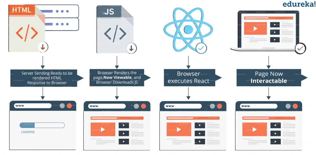 Each time new data is added or any data is updated at the back end, the browser reloads the web page and repeats the whole process again. Only after this, we can see the updated data on the view. But this traditional data flow has one major drawback, it uses the DOM (Document Object Model). DOM is an object that is created by the browser each time a web page is loaded which can dynamically add or remove the data at the back end. But each time any modifications were done a new DOM is created for the same page. This repeated creation of DOM results in unnecessary memory wastage and a decrease in applications performance. React JS is in high demand among all other Web developer training Courses in India and the United States.