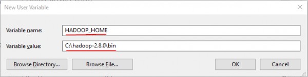 Replace the entry in “Variable value” with the path to the Hadoop folder.